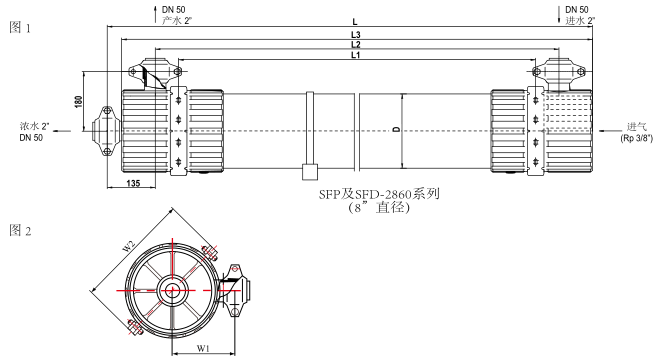 SFP-2860膜組件適用于流量在 50 m3/hr(220 gpm)以上的系統。